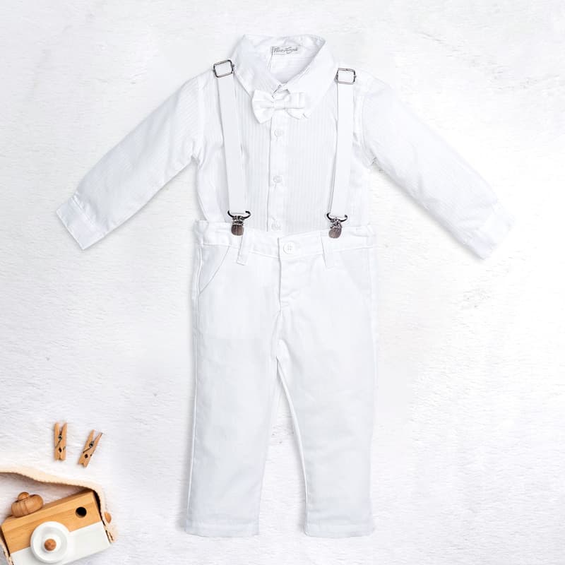 Conjunto Tricot Suéter e Calça Baseball Listras Bege e Azul Marinho 02 Peças