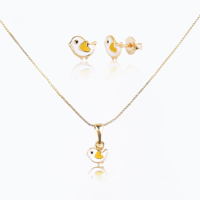 Conjunto Infantil Colar e Brincos Passarinho Ouro