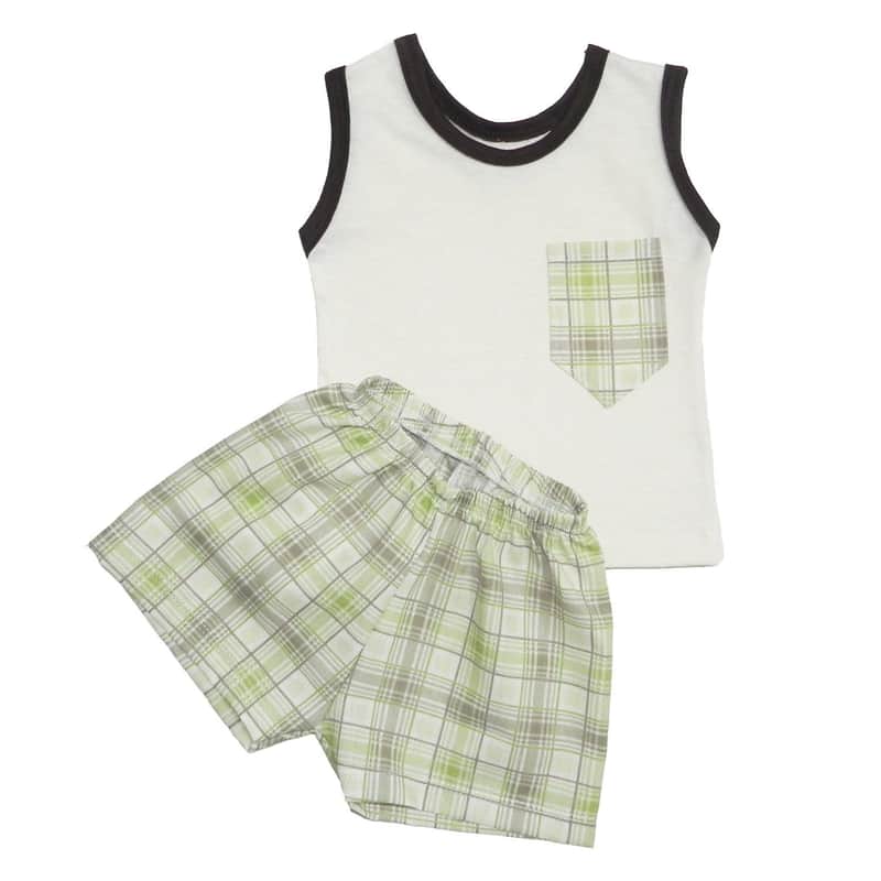 Conjunto Regata e Short Xadrez Verde 6 a 9 Meses da Nicoli Ferri: R$ 76,49 no PIX ou R$ 89,99 em ate 12x sem juros. Frete gratis acima de R$499. Entrega rastreada com garantia de 7 dias para trocas.