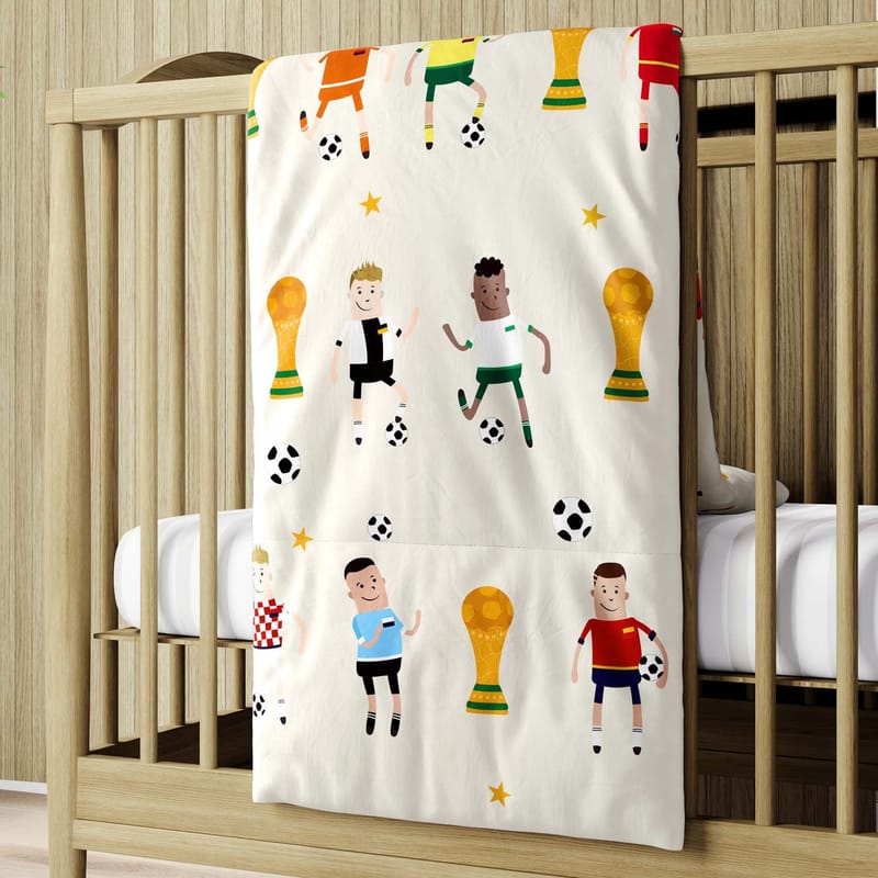 Quem nunca sonhou em ser um jogador de futebol? Criada para marcar um golaço na decoração do cantinho dos pequenos, o Edredom de Berço Seleções do Mundo tem tudo que a criançada precisa para se sentir dentro de um estádio.