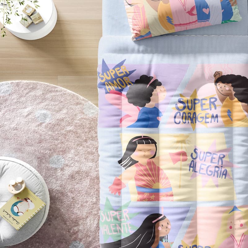 Criação exclusiva da Grão de Gente para a linha Sabrina Sato Mom, o Edredom Infantil Solteiro Heroínas é perfeito para crianças cheias de personalidade e que amam soltar a imaginação.