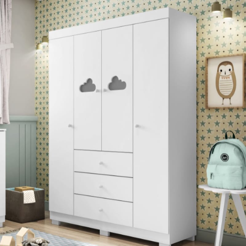 Guarda Roupa Infantil Branco 4 Portas Ane
