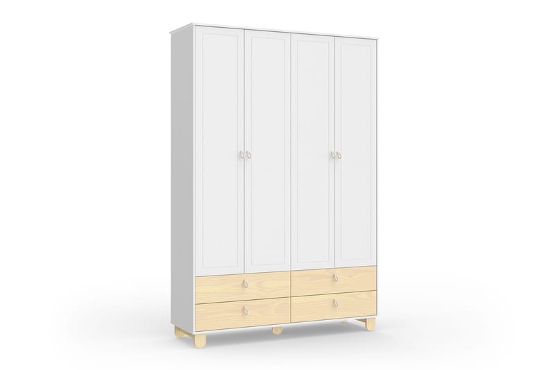 Guarda Roupa Infantil Branco Soft/Natural 4 Portas Rope Natural