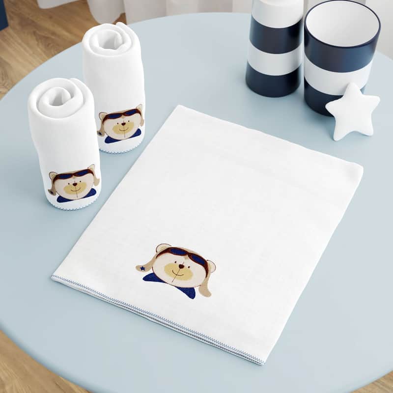 Jogo de Fraldas Ombro Urso Aviador com 3 da Grão de Gente: R$ 51,84 no PIX ou R$ 60,99 em ate 12x sem juros. Frete gratis acima de R$499. Entrega rastreada com garantia de 7 dias para trocas.