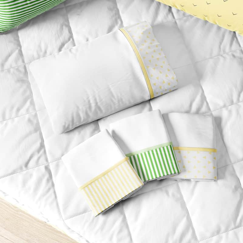 Jogo de Fronhas com Estampas Geométricas Amarelo e Verde 3 Peças da Grão de Gente: R$ 21,24 no PIX ou R$ 24,99 em ate 12x sem juros. Frete gratis acima de R$499. Entrega rastreada com garantia de 7 dias para trocas.