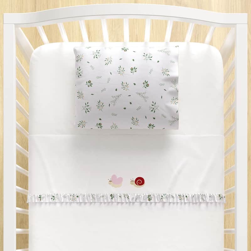 Jogo de Lençol Berço Bordado Borboleta e Caracol 3 peças