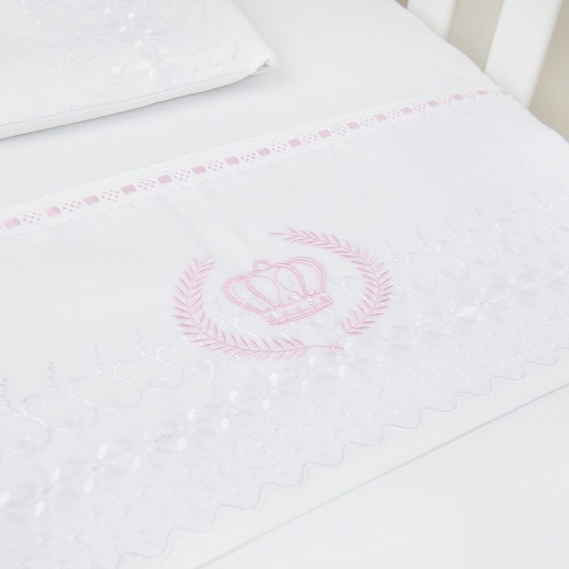 Lençol Berço com Elástico Petit Poá Branco e Rosa