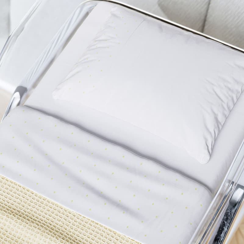 Composto por um lençol de baixo com elástico, um lençol de cima e uma fronha com viras bordadas, esse jogo de lençol vai adicionar mais aconchego ao quarto da maternidade. E o melhor: também pode ser usado no carrinho e no ninho combina lindamente com diversos temas de decoração!