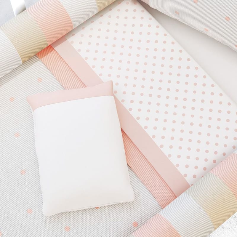 Lençol Berço com Elástico Petit Poá Branco e Rosa