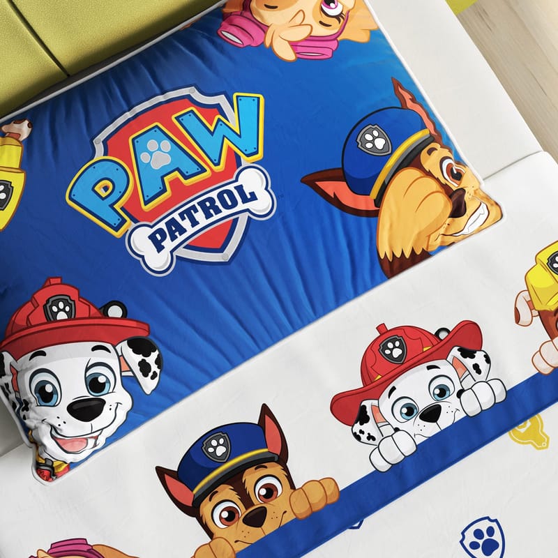 Atenção: O Jogo de Lençol Infantil Solteiro Patrulha Canina é composto pelos itens descritos acima. Sendo assim, os outros produtos que aparecem na cena são vendidos separadamente ou meramente ilustrativos.