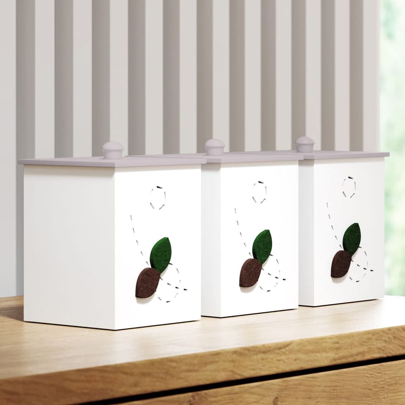 O Jogo de Potes Folhas Safári Baby confere mais praticidade à rotina dos pais e originalidade à decoração do quarto de bebê. Fácil de combinar com diversos estilos e temas.