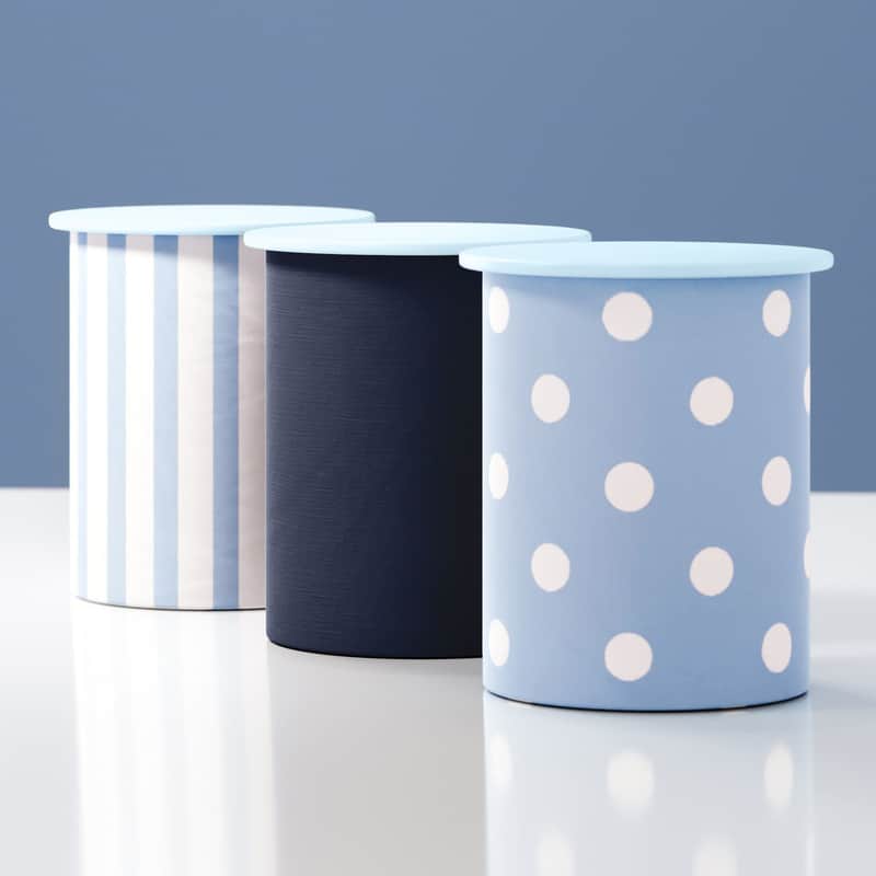 Jogo de Potes Listras e Bolinhas Azul