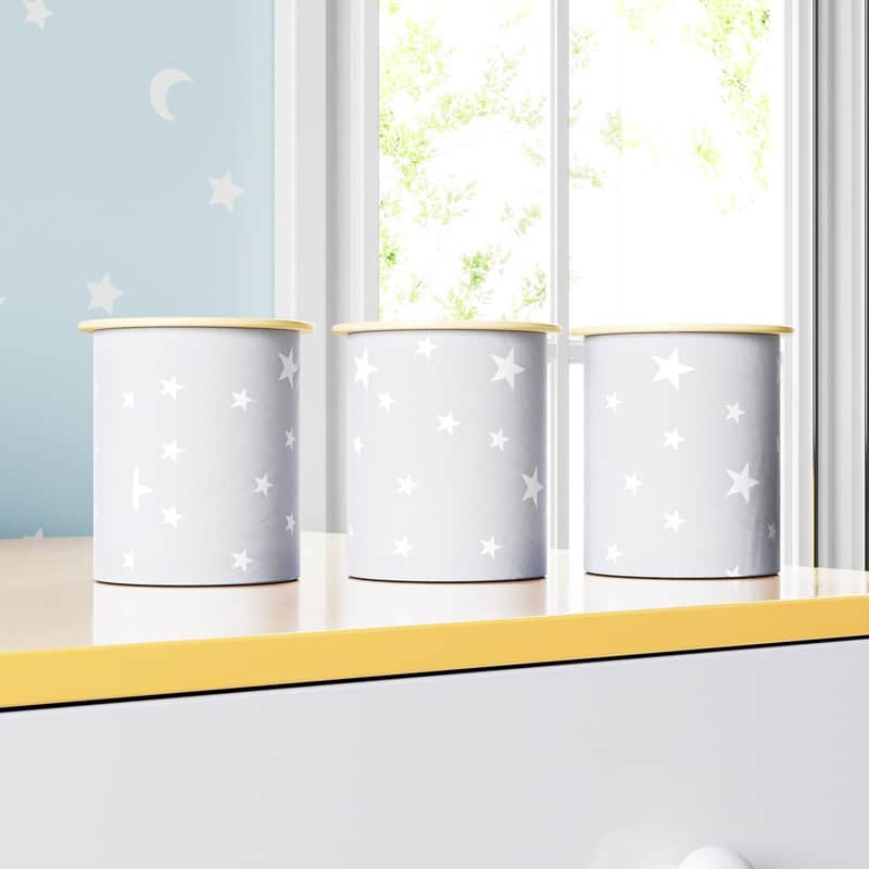 Jogo de Potes Redondos Estrelinha Cinza e Amarelo