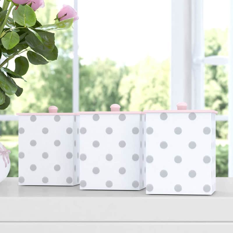 Jogo de Potes Rosa/Cinza Poá