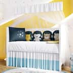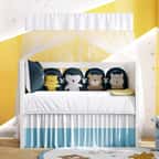 O Kit Berço Amiguinhos Astronautas traz estampas exclusivas em alta definição para compor a decoração do quarto de bebê com aconchego e originalidade. Essa novidade exclusiva da Grão de Gente é composta por quatro almofadas Amiguinhos, que servem como protetores laterais e já vêm com zíper e fitas para fixação no berço e entre si. A cabeceira com desenhos de planetas, do sol e da lua vai inspirar lindos sonhos! Confira os detalhes desse enxoval e encante-se: Tecidos Microfibra 100% Poliéster