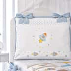 Toda a ternura da Coleção Astronauta Patchwork Azul fica evidente nas estampas costuradas entre si, seguindo a técnica Patchwork. Elas esbanjam bom gosto, são cheias de personalidade e foram escolhidas cuidadosamente para criar um quarto de bebê harmônico, com a decoração dos sonhos para os pequenos príncipes! Belíssimos detalhes, como os laços azuis, as estampas e os bordados exclusivos de foguetinhos, estrelinhas e planetas, também fazem parte dos grandes destaques da coleção e ditam a temática de uma aventura fofinha e feliz!