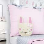 Numa fina confecção, o edredom macio aquecerá a pequena com conforto no inverno mais rigoroso e o jogo de lençol, completo com fronha, lençol de cima e de baixo com elástico, será perfeito para os dias ensolarados. Pensando na proteção do pequeno, o Kit Berço Coelhinha acompanha protetor com cabeceira e lateral, com zíper e tecido estampado. Já que os médicos não recomendam o uso de repelentes em bebês menores de seis meses, o mosquiteiro com bandô decorativo e varal de tule vai manter a neném afastada de insetos, mosquitos e pernilongos. Dentre as peças decorativas, a Almofada de Brincar se destaca e vai roubar a cena com o formato lúdico desse bichinho fofo.