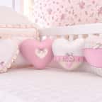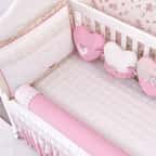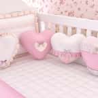 Apaixonante, o Kit Berço Coração vai embalar os sonhos da sua princesa nesse mundo cor-de-rosa! Cheio de amor, ele é o principal responsável pela proteção da sua menininha e compõe a decoração do quarto de bebê com 13 belíssimas peças — indicadas para berço nacional e americano. Os produtos que entram em contato direto com a pele da recém-nascida são 100% algodão e asseguram o bem-estar da pequena. Já os enchimentos de fibra de poliéster deixam os itens bem fofinhos e proporcionam todo o aconchego que a sua menina merece. Em uma fina confecção, rendas, bordados, laços e detalhes de pérola aparecem para embelezar os produtos e ditar esse belo estilo romântico.