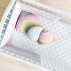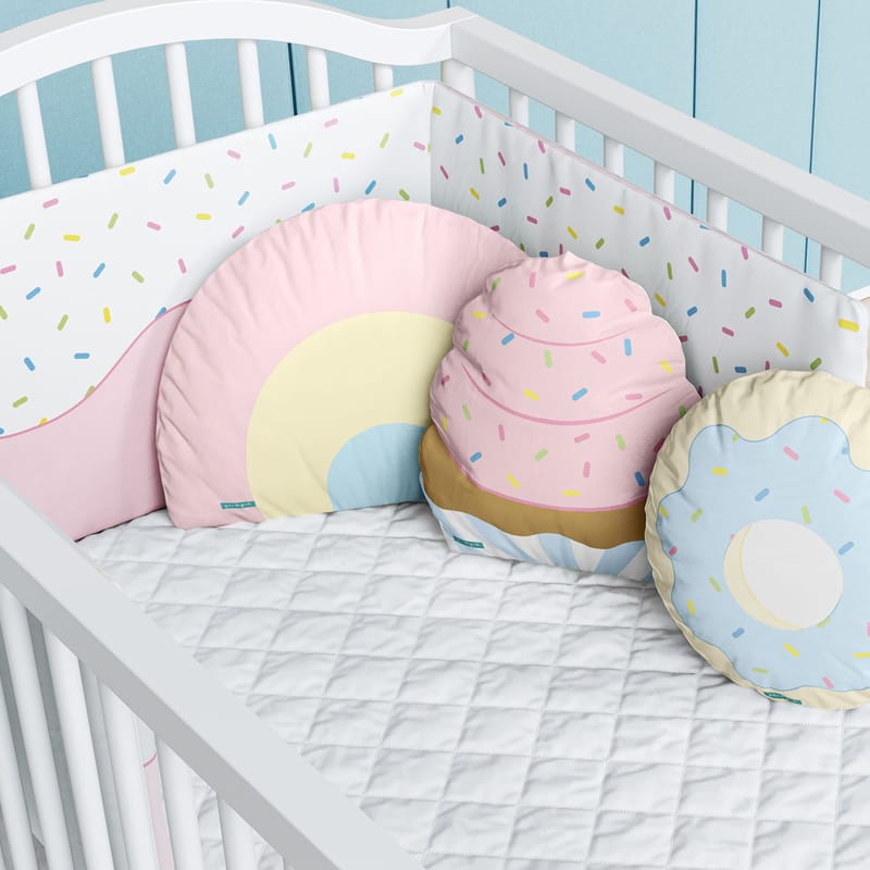Um mundo açucarado e colorido para a sua menina! O Kit Berço Dobrável 2 em 1 Doce Sonho traz um conceito contemporâneo e encantador para o quarto de bebê! Com o protetor de berço dobrável que você pode usar com formato em U ou em L, o enxoval prioriza o conforto e a versatilidade sem abrir mão do toque lúdico, tão importante para o quartinho dos sonhos!