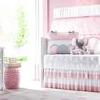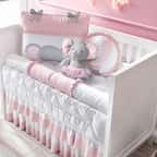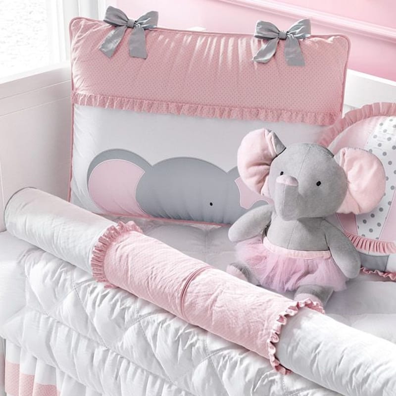 O Kit Berço Elefantinha e o Balão foi criado para realizar o sonho das mamães românticas, que não abrem mão de um toque lúdico e cheio de meiguice na decoração do quarto de bebê. Um enxoval aconchegante em rosa, branco e cinza, com jogo de lençol completo 100% algodão (150 fios), edredom matelado fofinho, uma cabeceira bordada, um mosquiteiro varal de tule com bando decorativo e quatro lindos rolinhos protetores para as laterais.