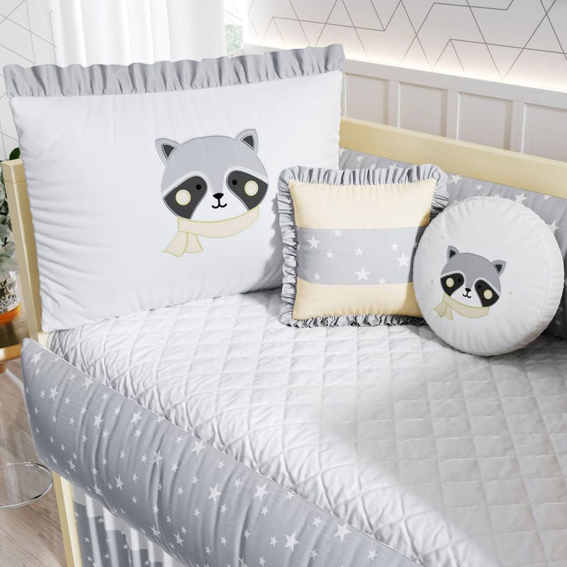 Kit Berço Guaxinim Amarelo e Cinza
