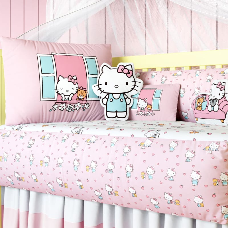 • Protetores laterais com estampa Hello Kitty, corações, maçãs e ursinhas em tons de rosa