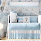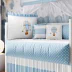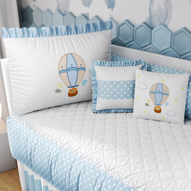 Você e seu bebê vão embarcar em uma linda aventura! O Kit Berço Leãozinho no Balão Azul é um produto exclusivo da Grão de Gente, maior marca da América Latina em enxoval e decoração para quarto de bebê. Um conjunto completo com tudo o que você precisa para aconchegar e proteger seu bebê com materiais de qualidade e enchimento fofinho. O protetor lateral e a cabeceira vêm com zíper, para facilitar a lavagem, e amarril, para fixação no berço.