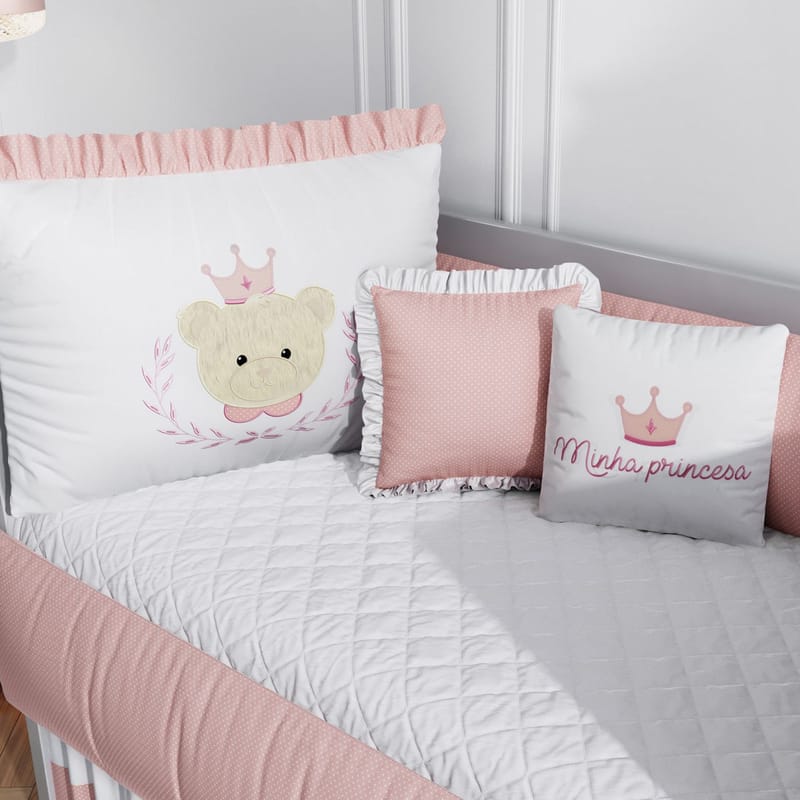 Um toque de realeza para o quartinho da sua menina! O Kit Berço Princesa Ursinha Rosa é um produto exclusivo da Grão de Gente, maior marca da América Latina em enxoval e decoração para quarto de bebê. Um conjunto completo com tudo o que você precisa para aconchegar e proteger sua bebê com materiais de qualidade e enchimento fofinho. O protetor lateral e a cabeceira vêm com zíper, para facilitar a lavagem, e amarril, para fixação no berço.
