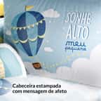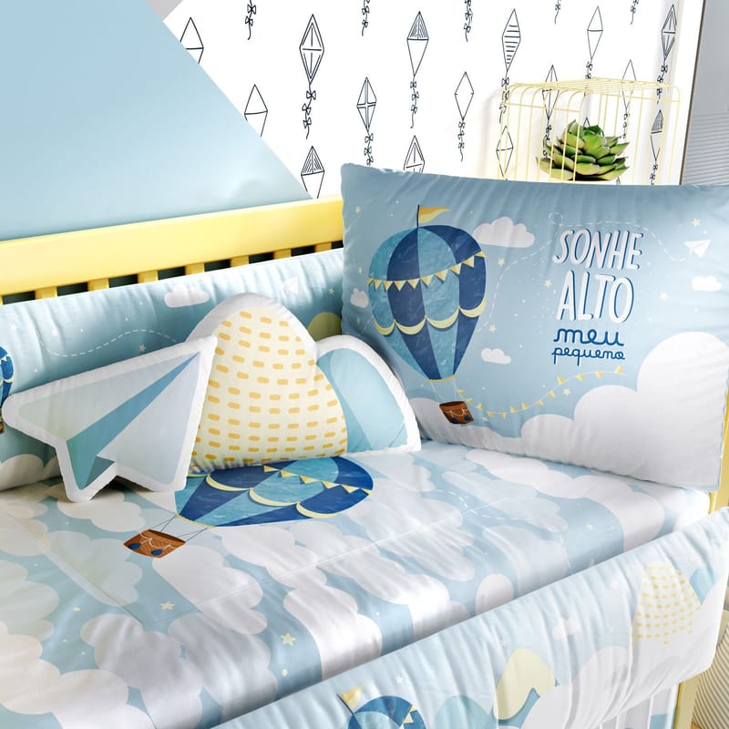 O Kit Berço Sonhe Alto Azul traz estampas exclusivas em alta definição para compor a decoração do quarto de bebê com aconchego e originalidade.Um enxoval encantador para receber o novo menino da família com muito amor. Na cabeceira e nas laterais, balões, nuvens e estrela inspiram os sonhos mais lindos. Confira os detalhes e encante-se com esse produto original Grão de Gente: