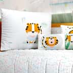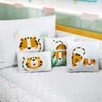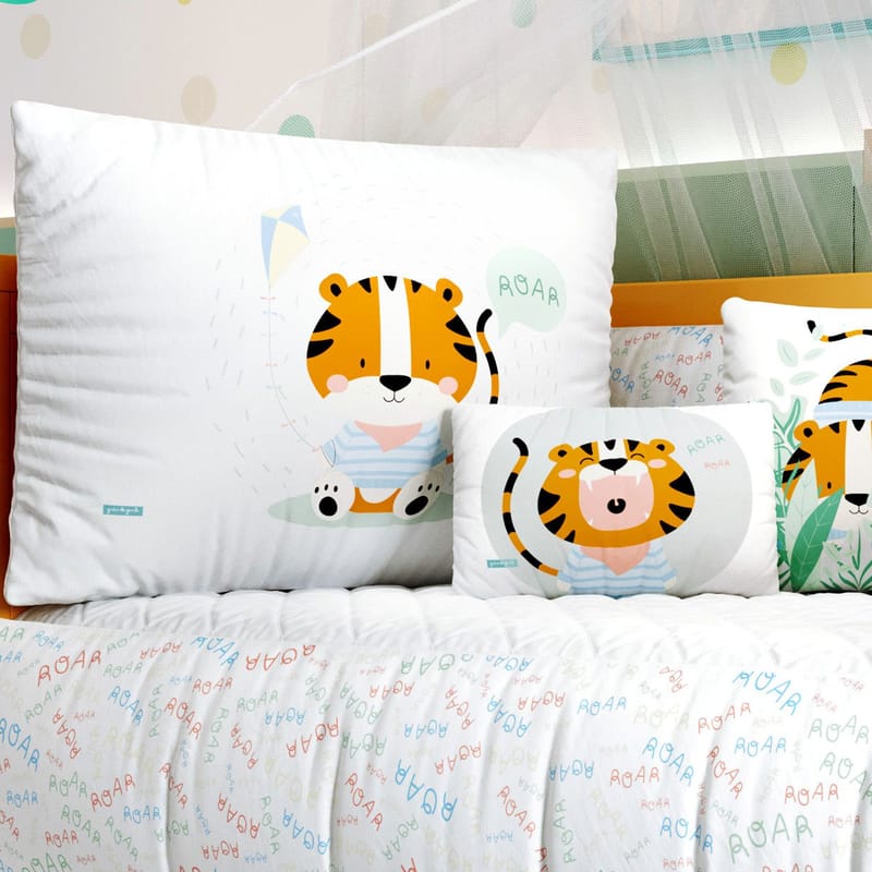 O Kit Berço Tigrinho Roar traz estampas exclusivas em alta definição para compor a decoração do quarto de bebê com aconchego e originalidade. Um enxoval encantador para receber o novo menino da família com muito amor. Na cabeceira, um filhote de tigre de camiseta segurando sua pipa. Nas laterais protetoras, a palavra roar se repete em várias cores adicionando descontração ao ambiente. Confira os detalhes e encante-se com esse produto original Grão de Gente: