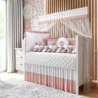 Encante-se com a delicadeza dessas lindas borboletinhas! O Kit Berço Menina Trança Borboleta Poá Rose é um produto exclusivo da Grão de Gente, principal marca da América Latina em enxoval e decoração para quarto de bebê. Um conjunto completo com tudo o que você precisa para aconchegar e proteger sua menina com materiais de qualidade e enchimento fofinho. O protetor lateral e a cabeceira vêm com zíper, para facilitar a lavagem, e amarril, para fixação no berço. Kit Berço indicado para berço americano e nacional.