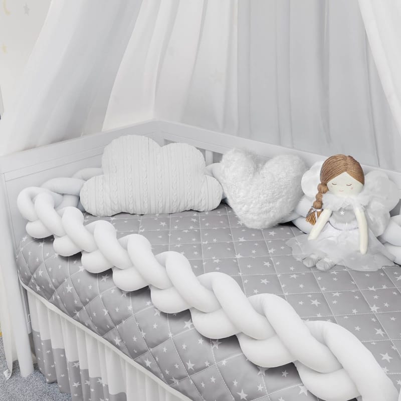 Para deixar seu amor protegido no bercinho, o protetor trança em formato U é a pedida certa! Com três metros de comprimento, pode ser usado no berço e na mini cama. Ele vira uma aconchegante almofada, aumentando a vida útil do produto.