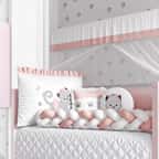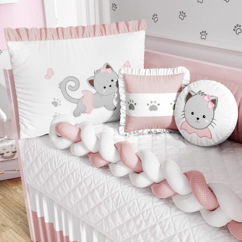Leve a fofura do Kit Berço Menina Trança Gatinha Rosa para o quarto de bebê da sua menina. Esse enxoval exclusivo da Grão de Gente tem tudo o que você precisa para aconchegar e proteger sua princesa com materiais de qualidade e enchimento fofinho. Os protetores laterais e a cabeceira vêm com zíper, para facilitar a lavagem, e amarril, para fixação no berço.