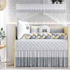 Esse simpático bichinho vai encantar você! O Kit Berço Trança Guaxinim é um produto exclusivo da Grão de Gente, maior marca da América Latina em enxoval e decoração para quarto de bebê. Um conjunto unissex completo com tudo o que você precisa para aconchegar e proteger seu pequeno com materiais de qualidade e enchimento fofinho. O protetor lateral e a cabeceira vêm com zíper, para facilitar a lavagem, e amarril, para fixação no berço.