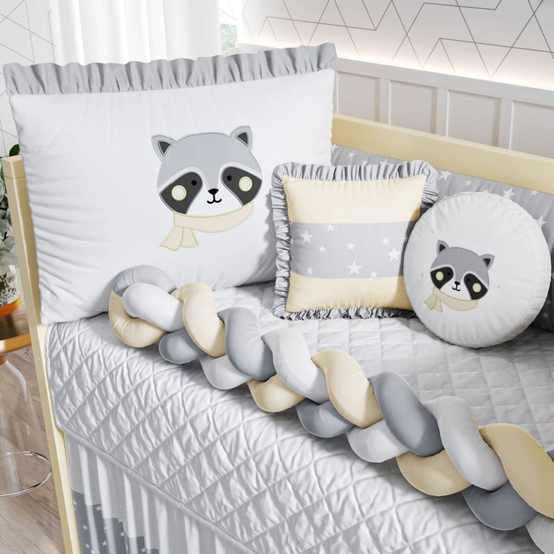 Kit Berço Trança Guaxinim Amarelo e Cinza