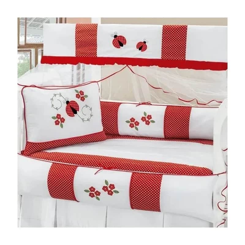 Kit Berço Trança Joaninha Vermelho e Branco