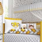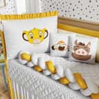 Só a Grão de Gente para trazer o mundo mágico da Disney para a decoração do quarto do seu bebê! O Kit Berço Trança Simba O Rei Leão é indicado para berço americano e nacional, um conjunto completo com 9 peças para aconchegar e proteger seu amor. Esse enxoval exclusivo, confeccionado com materiais de qualidade e enchimento fofinho, possui uma linda cabeceira com bordado do Simba, já vêm com zíper, para facilitar a lavagem, e amarril, para fixação no berço.