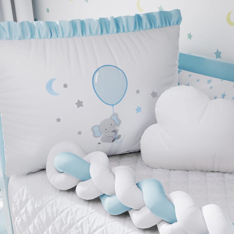 Kit Berço Trança Sonhe Alto Elefantinho Azul