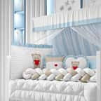 Um toque de carinho para o quartinho do seu menino! O Kit Berço Trança Ursinho Coração Azul é um produto exclusivo da Grão de Gente, maior marca da América Latina em enxoval e decoração para quarto de bebê. Um conjunto completo com tudo o que você precisa para aconchegar e proteger seu bebê com materiais de qualidade e enchimento fofinho. O protetor lateral e a cabeceira vêm com zíper, para facilitar a lavagem, e amarril, para fixação no berço.