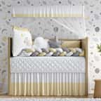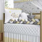 O Kit Berço Trança Urso Sonequinha Amarelo e Cinza é um produto com bordado e estampa exclusiva da Grão de Gente, maior marca da América Latina em enxoval e decoração para quarto de bebê. Um conjunto completo com tudo o que você precisa para aconchegar e proteger seu bebê. A cabeceira bordada e o protetor lateral vêm com zíper, para facilitar a lavagem, e amarril, para fixação no berço. São 9 peças confeccionadas com materiais de qualidade e enchimento fofinho que você vai amar!