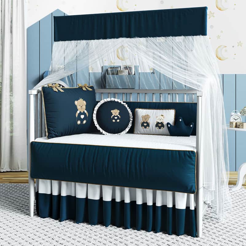 Kit Berço Ursinho Realeza Marinho da Grão de Gente: R$ 237,99 no PIX ou R$ 279,99 em até 12x sem juros. Frete grátis acima de R$499. Entrega rastreada com garantia de 7 dias para trocas.