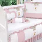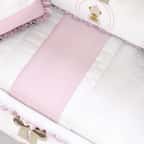 Pronto para embalar as noites da sua princesa, o Kit Berço Ursinha Realeza Rosa ganhou a sofisticação do estilo clássico e compõe a decoração do quarto de bebê com nobreza! Ideal para berço nacional ou americano, as nove peças foram desenhadas com todo o carinho da Grão de Gente e vão ninar a neném com muito conforto. O enxoval é confeccionado com a maciez do tecido 100% algodão e assegura o bem-estar da pequena, respeitando sua sensível pele. Já os enchimentos de fibra de poliéster siliconada deixam os produtos bem fofinhos e proporcionam todo o aconchego que a sua menina merece. Nesta coleção, laços, babados e belos bordados se destacam em uma elegante paleta de cores, que ditam o tema feminino com o rosa e branco.