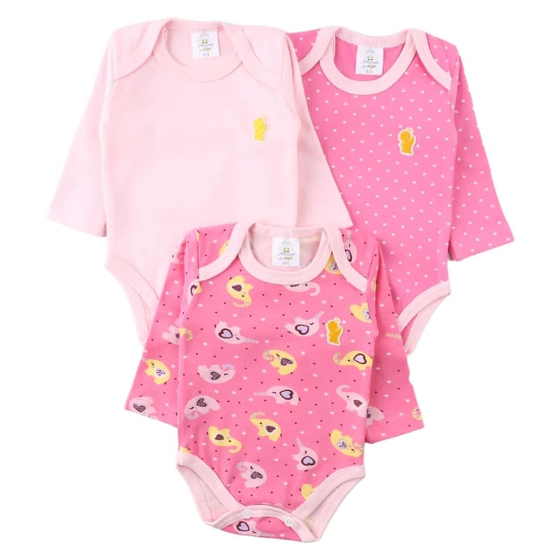 Body Manga Longa Basic Liso Palha 6 a 9 Meses
