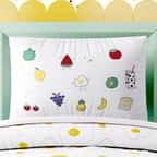 • Fronha de travesseiro com zíper e estampa de comidinhas e frutinhas