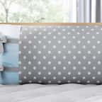 • Cabeceira com enchimento fofinho, zíper, estampa de bolinhas e laços decorativos