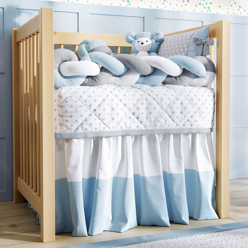 Kit Mini Berço Trança Poá Azul