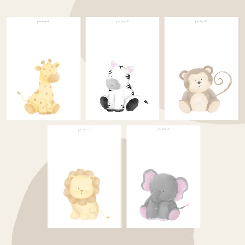 Kit Pôster Adesivo Amiguinhos Safári 5 peças