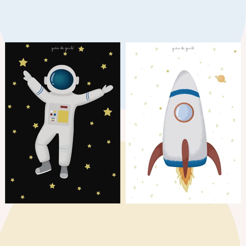 Kit Pôster Adesivo Astronautas 2 peças