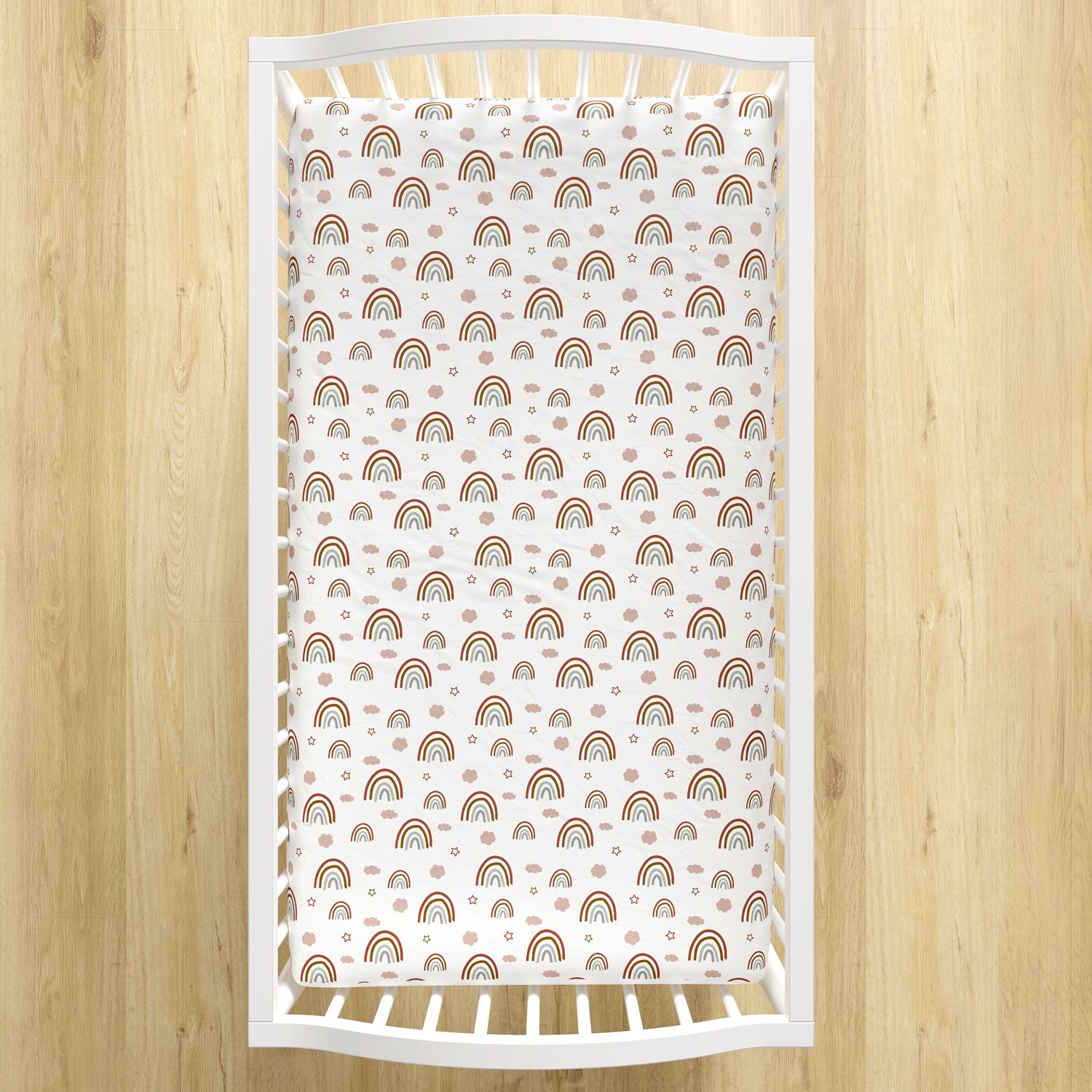 Lençol Berço com Elástico Arco-íris, Nuvem e Estrelinha Boho