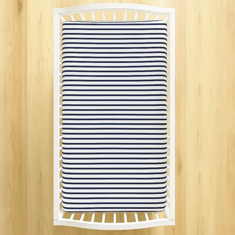 Lençol Berço com Elástico Listrado Azul Marinho